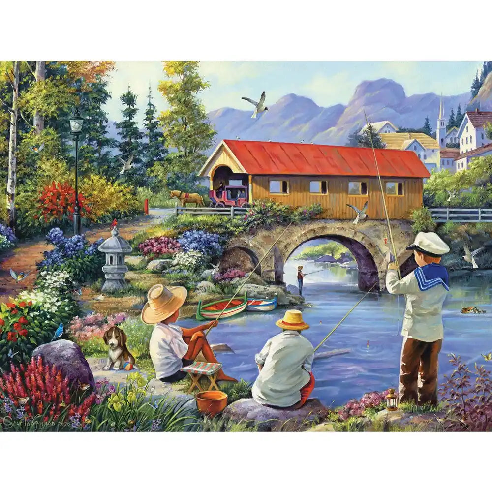 Fishing By A Covered Bridge Jigsaw Puzzle