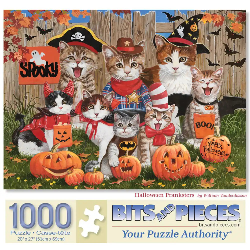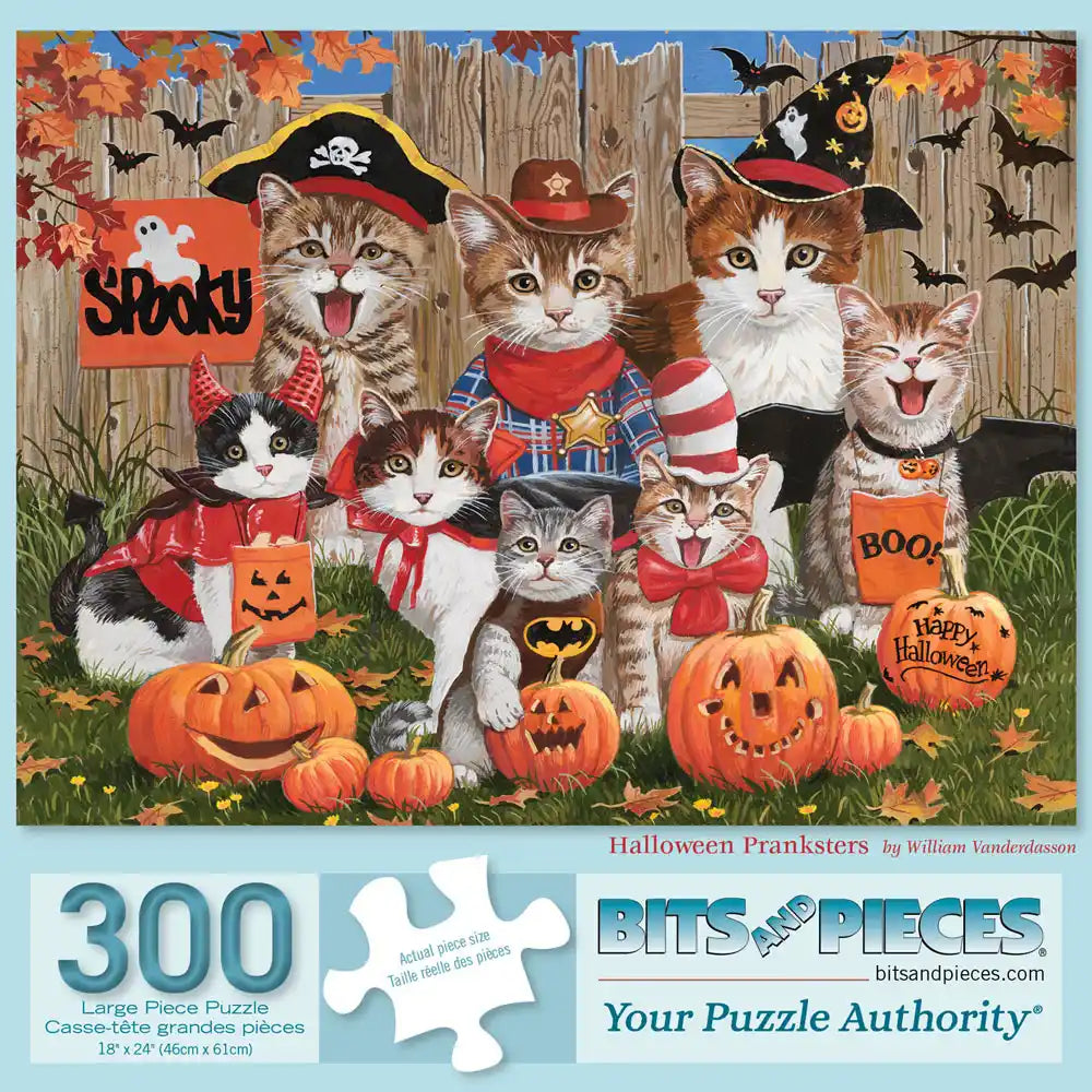 Get ready for a purr-fectly spooky puzzle adventure! "Halloween Pranksters" by William Vanderdasson is a delightful celebration of mischievous kittens dressed in their Halloween best. From pirates to witches and everything in between, these adorable felines are ready to steal your heart—along with your candy! With jack-o'-lanterns glowing and bats flitting through the autumn air, this puzzle is as festive as it is fun.